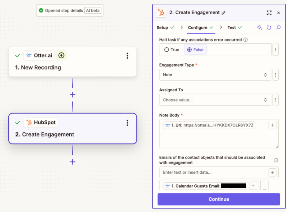 I signed up for the free version of Zapier, and it took almost no time to create an automation that uploads my meeting recordings to the relevant contact record in HubSpot.