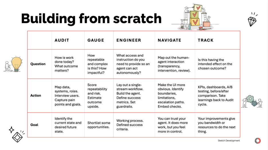 Make data machine-readable. Make decisions explicit. Design human-agent collaboration points deliberately. Build for explainability from day one.