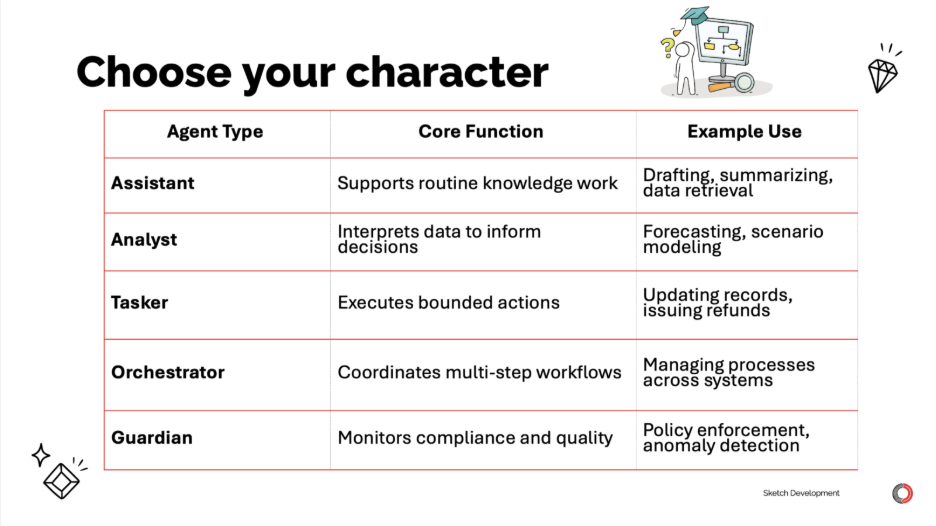 - Tasker agents — execute bounded actions like updating records, routing tickets, and handling operational tasks.